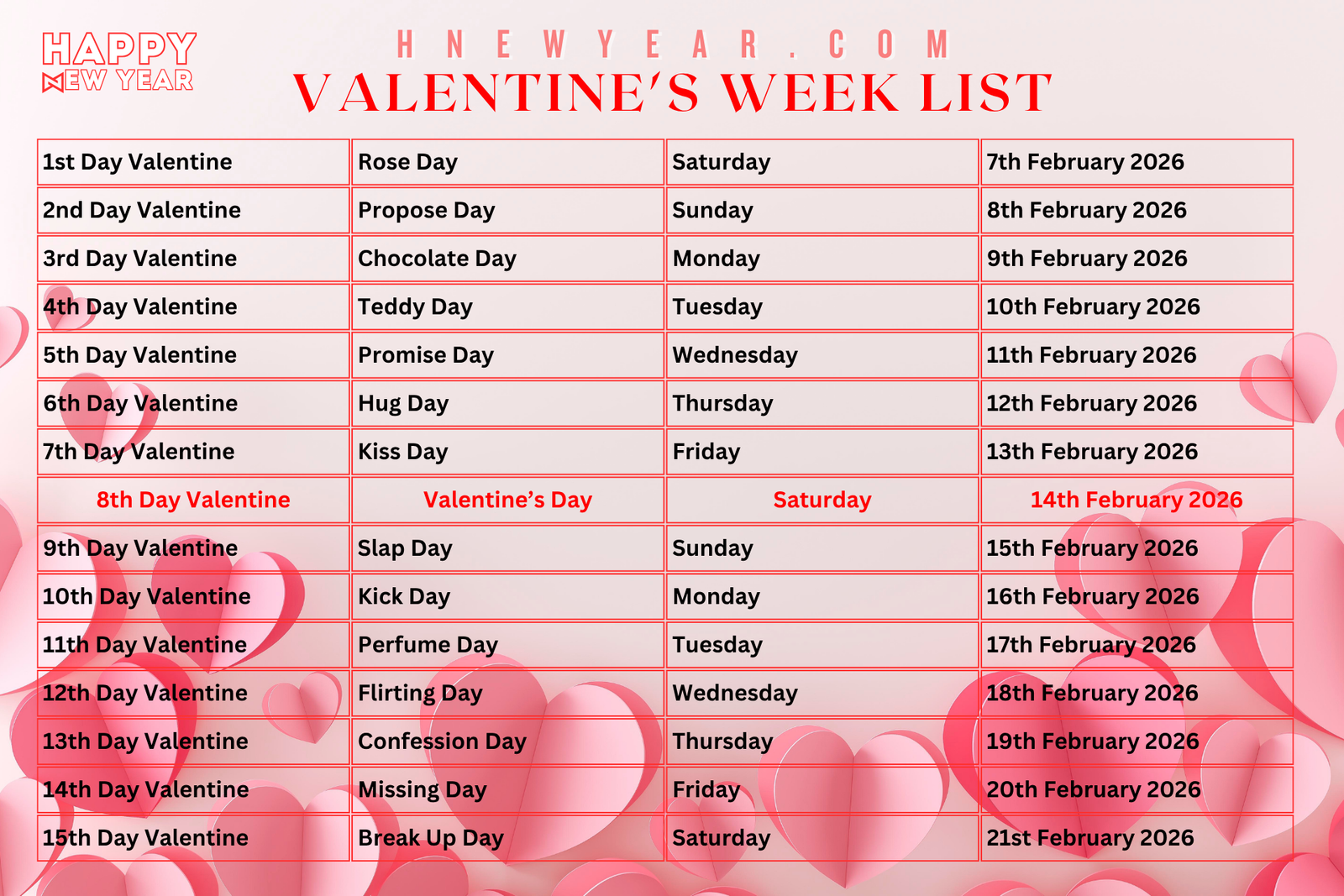 Valentine’s Week List Dates Schedule February Days List Advertisement Valentine’s Week List Dates Schedule February Days List
